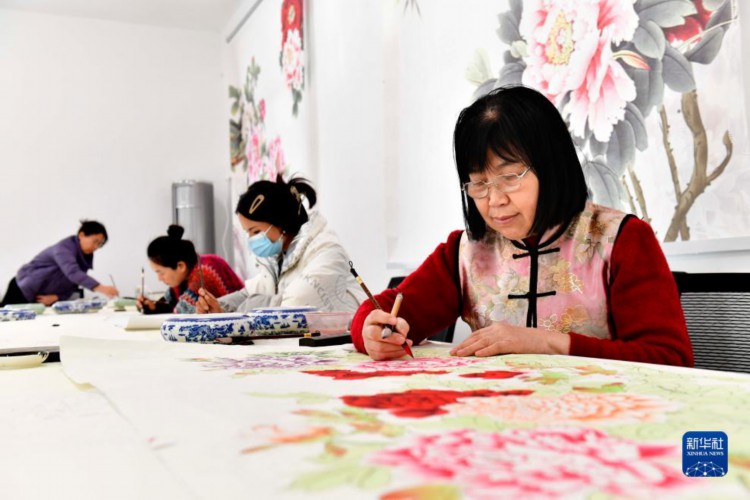 12月2日,在巨野县麒麟镇麒麟书画院,农民画师在创作工笔牡丹画。 山东省菏泽市巨野工笔牡丹画是山东省级非物质文化遗产。近年来,巨野县将工笔牡丹画作为文化“两创”的发力点和赋能乡村振兴的新引擎,编制巨野书画产业发展规划,并开展农民画师免费培育工程,努力让一幅牡丹画,绽放致富花。目前,巨野县拥有绘画从业人员2万余人,巨野工笔牡丹画远销海外。 新华社记者 郭绪雷 摄