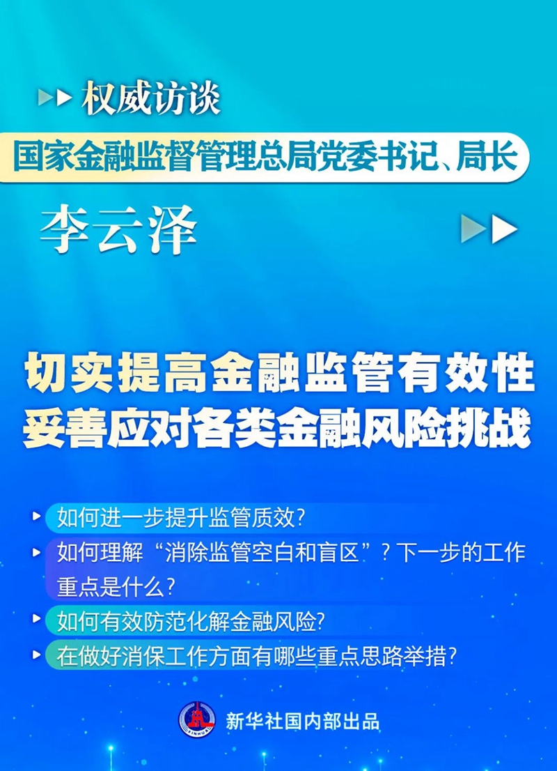 近期,新华社记者独家专访中国人民银行党委书记、行长潘功胜,国家金融监督管理总局党委书记、局长李云泽,证监会党委书记、主席易会满,信息量满满。
