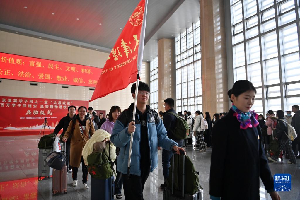2023-12-05 09:47:50 来源:新华网 责任编辑:吴静 作者:李然12月4日,高校师生代表在活动现场领取背包。 当日,京津冀学子同上一堂“大思政课”暨“百万学子回延安 延安精神进校园”活动启动仪式在天津火车站举行。来自北京师范大学、南开大学、河北工业大学等13所高校的约300名师生,将赴延安开展为期一周的红色研学实践活动。 新华社记者 李然 摄 12月4日,天津理工大学师生准备进站前往延安。 当日,京津冀学子同上一堂“大思政课”暨“百万学子回延安 延安精神进校园”活动启动仪式在天津火车站举行。来自北京师范大学、南开大学、河北工业大学等13所高校的约300名师生,将赴延安开展为期一周的红色研学实践活动。 新华社记者 李然 摄 12月4日,高校学子排队登车准备前往延安。 当日,京津冀学子同上一堂“大思政课”暨“百万学子回延安 延安精神进校园”活动启动仪式在天津火车站举行。来自北京师范大学、南开大学、河北工业大学等13所高校的约300名师生,将赴延安开展为期一周的红色研学实践活动。 新华社记者 李然 摄 |