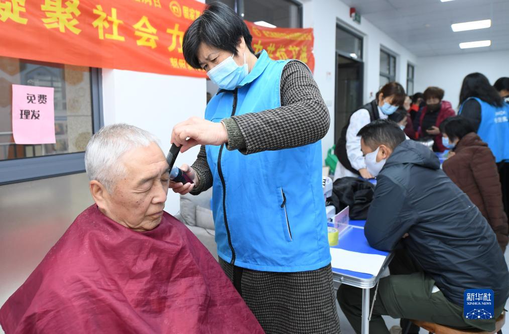 12月4日,在湖州市爱山街道龙庭社区,志愿者联合会为居民开展理发、衣服缝补、口腔检查等志愿服务。