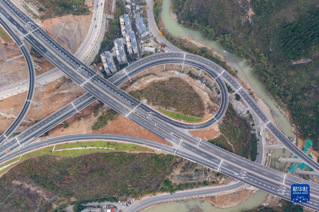 这是12月4日在重庆市巫溪县拍摄的巫镇高速巫溪互通(无人机照片)。