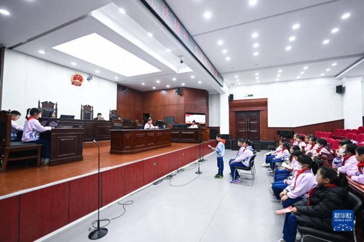 12月5日,西宁市城西区昆仑路小学学生参加城西区人民法院组织开展的“模拟法庭”活动。 12月1日至7日为“宪法宣传周”,青海省西宁市城西区人民法院组织开展“模拟法庭”,邀请小学生担任审判员、公诉人、辩护人等法庭角色,体验法庭审理程序,增强孩子们的法律观念和守法意识。 新华社记者 张龙 摄