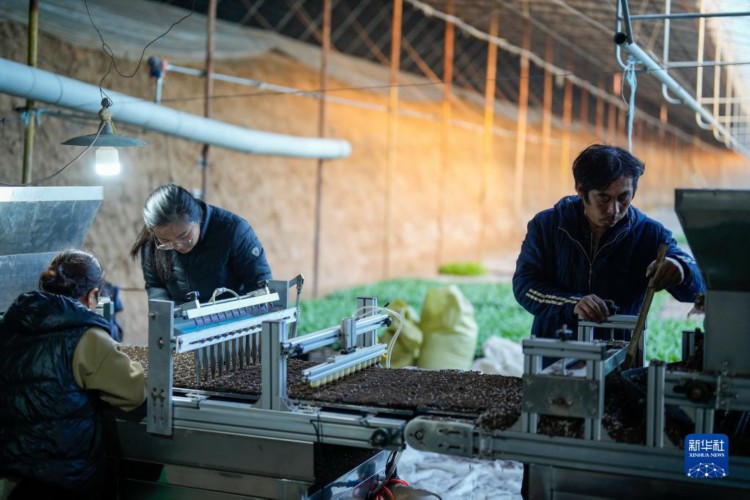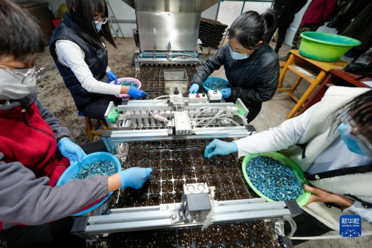 12月5日,河北省乐亭县一家育苗基地的工人在进行播种作业。 河北省乐亭县是设施农业大县,全县设施农业面积达28万亩。为确保冬季市场供应,也为新的一年蔬菜生产和扩大规模做好准备,苗农们在寒冬时节抓紧培育优质蔬菜幼苗。 据介绍,乐亭县已发展大中型育苗基地16家,全年蔬菜育苗能力达2亿株。 新华社记者 牟宇 摄
