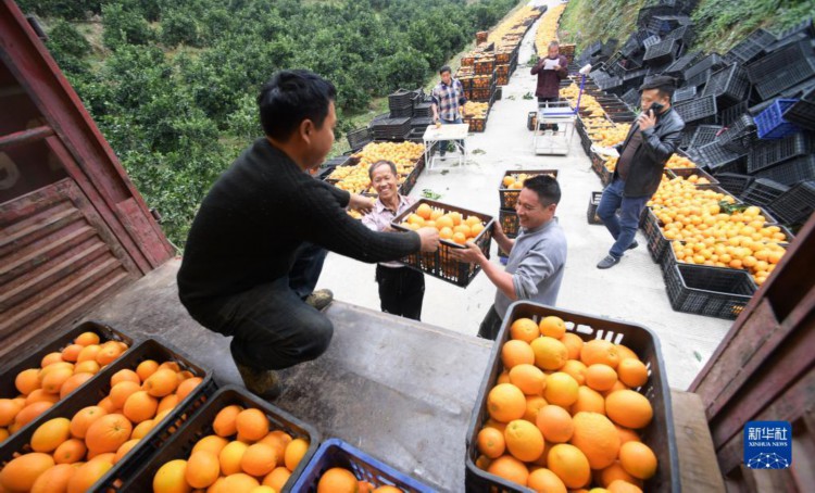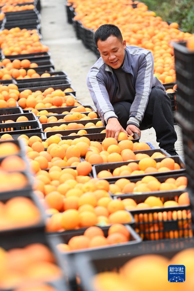 12月5日,农民在罗甸县龙坪镇脐橙基地将采收的脐橙装车。 近日,贵州省罗甸县的脐橙迎来收获季,农民在脐橙种植基地采摘、搬运脐橙,供应市场。 近年来,罗甸县因地制宜,优化农业产业结构,大力发展脐橙、火龙果、沃柑等水果种植,村民通过土地流转、务工收入、产业分红等方式实现增收。2023年,罗甸县脐橙种植面积约3.47万亩。 新华社记者 杨楹 摄