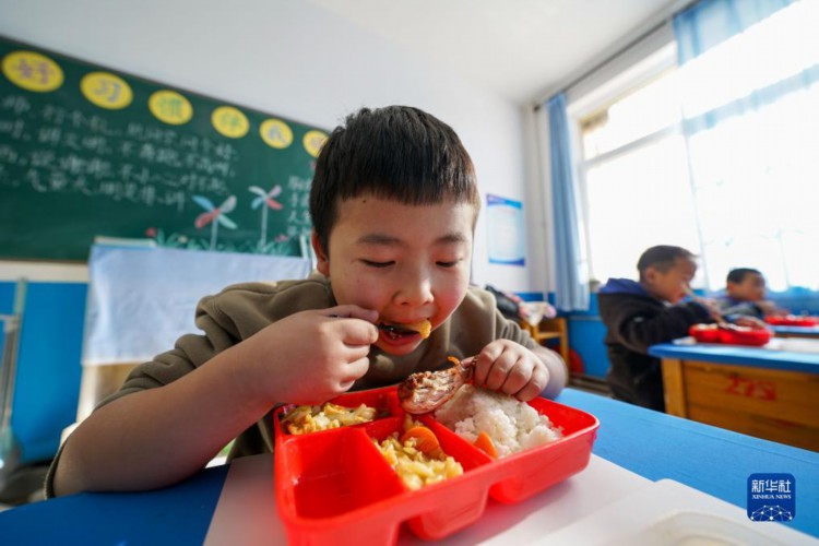 12月5日,在乐亭县胡家坨镇中心小学,学生在教室内吃午餐。 近年来,河北省乐亭县立足学生和家长需求,将“中小学生午餐午休服务”列入全县民生实事项目,构建“以政府为主导、以学校为主体、全社会协同推进”的三位一体服务新格局。该县依托标准化配餐公司,为学生提供营养、美味、廉价的午间配餐服务,并综合利用校内专用教室和闲置空间,打造学生午间休息的“温馨园地”。 新华社记者 牟宇 摄