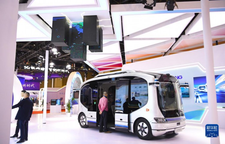 12月6日,人们在2023世界5G大会展厅现场参观宇通自动驾驶巴士。