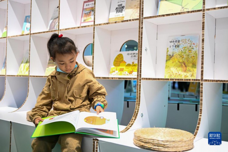 12月7日,在儿博会现场,小朋友在移动图书馆阅读绘本。