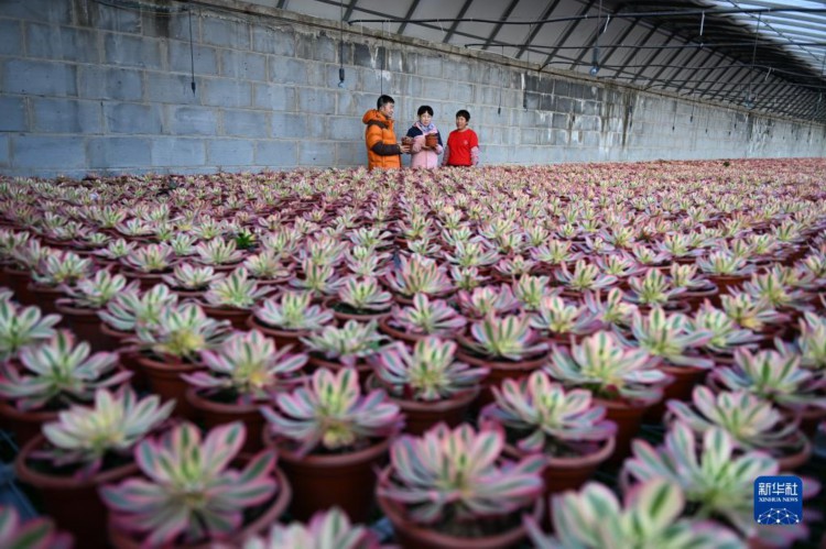 12月7日,农民在河北省唐山市丰南区胥各庄镇一处大棚内打理多肉植物。 近年来,河北省唐山市丰南区结合市场需求,引导农民在冬季利用设施大棚开展花卉、云竹等观赏植物种植,并推行“线上”和“线下”相结合的销售模式,为种植户带来良好收益。目前,丰南区已建立特色观赏植物种植基地20余个。 新华社记者 牟宇 摄
