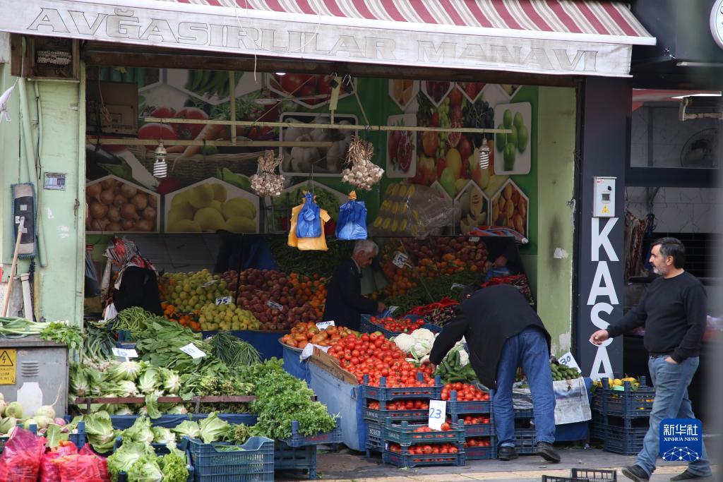 12月6日,人们在土耳其卡赫拉曼马拉什露天市场购物。