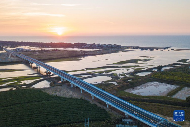 12月9日拍摄的海南环岛旅游公路东方段感城港大桥(无人机照片)。