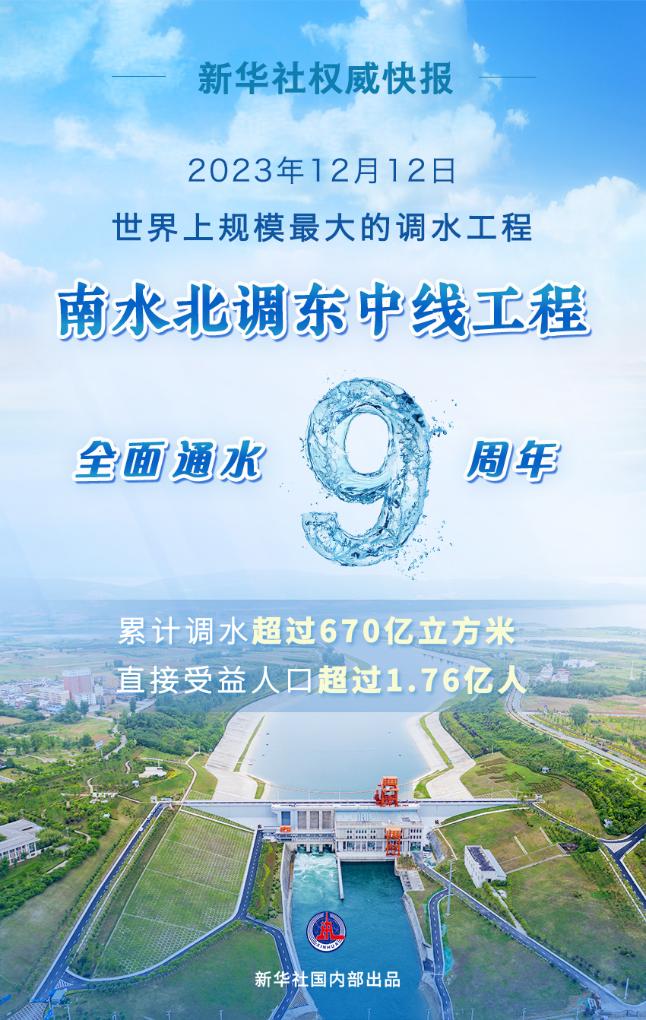 新华社权威快报丨南水北调东中线工程全面通水9周年 累计调水超过670亿立方米