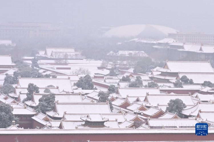 这是12月11日早晨拍摄的故宫。 自12月10日夜间开始,北京全市各地陆续降雪。北京市气象部门预计,12月11日仍有小雪或零星小雪。 新华社记者 李鑫 摄