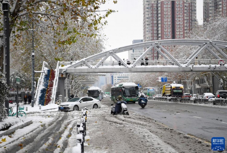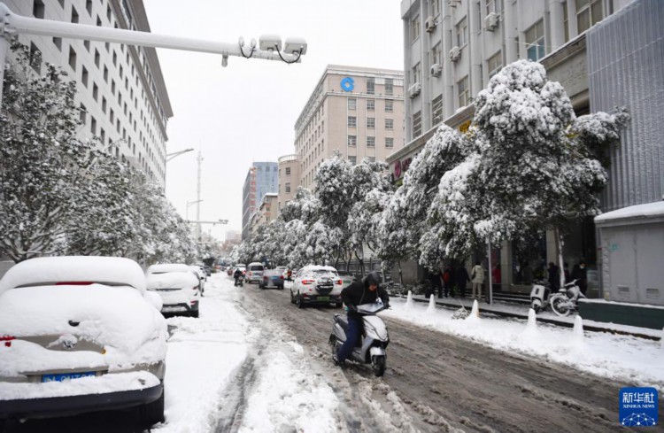 12月11日拍摄的郑州市花园路街道。 12月10日至11日,受强冷空气影响,河南迎来今冬首轮大范围雨雪天气,其中郑州市出现暴雪,局部大暴雪。 新华社记者 郝源 摄