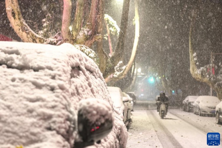 12月11日凌晨,市民在雪中骑行。 12月10日至11日,受强冷空气影响,河南迎来今冬首轮大范围雨雪天气,其中郑州市出现暴雪,局部大暴雪。 新华社记者 吴刚 摄