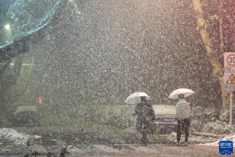 12月10日深夜,两名市民冒雪出行。 12月10日至11日,受强冷空气影响,河南迎来今冬首轮大范围雨雪天气,其中郑州市出现暴雪,局部大暴雪。 新华社记者 吴刚 摄