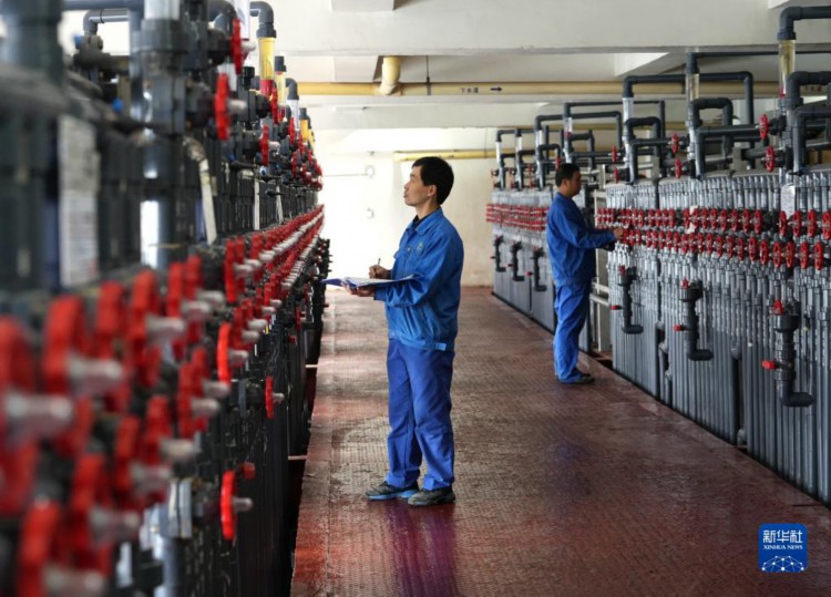 12月12日,工作人员在石家庄市栾城区圣雪大成制药公司的提取车间查看设备运行状况。
