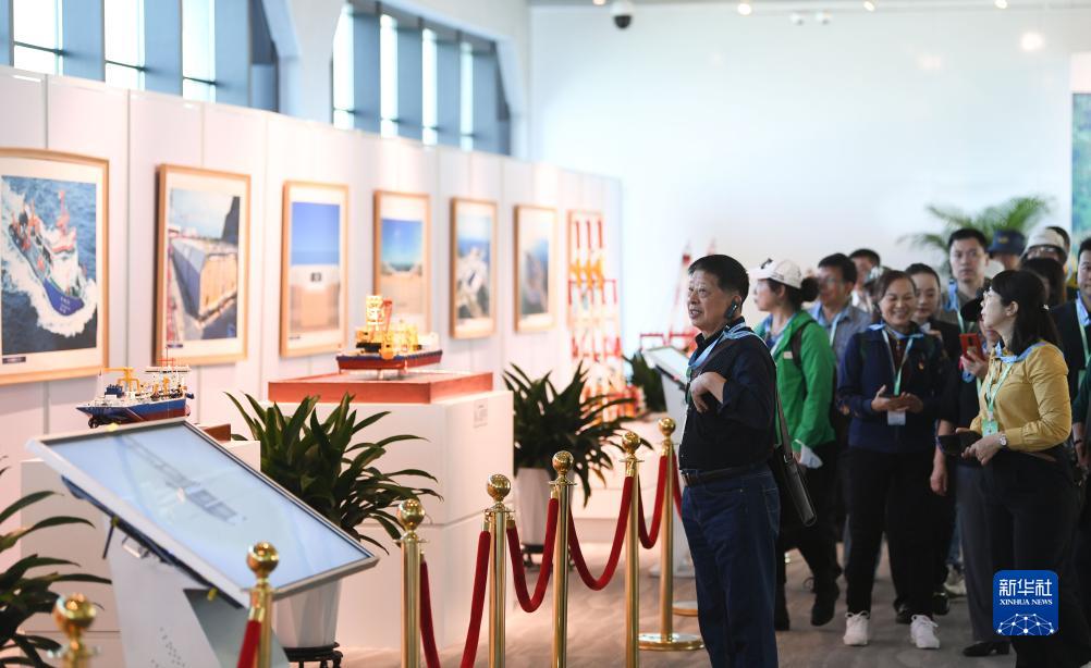 12月15日,游客在港珠澳大桥东人工岛展厅参观。