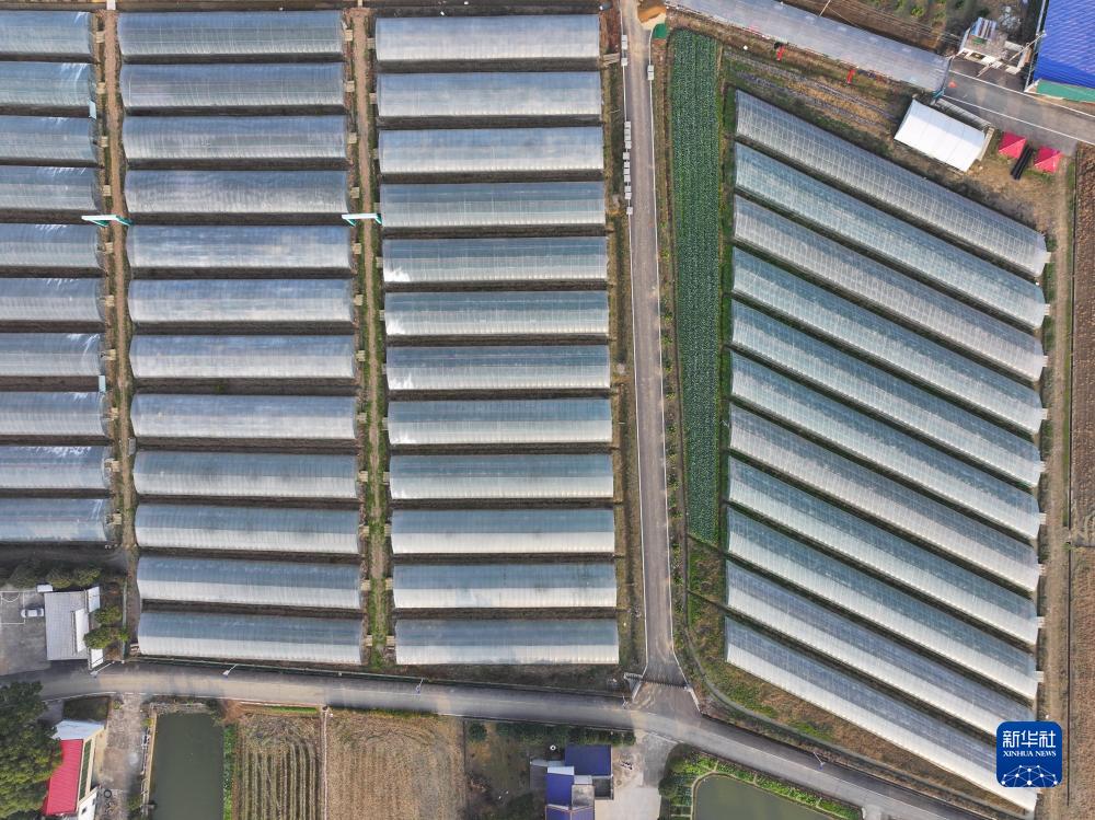 这是12月21日拍摄的长沙市望城区靖港镇的一处蔬菜大棚种植基地(无人机照片)。