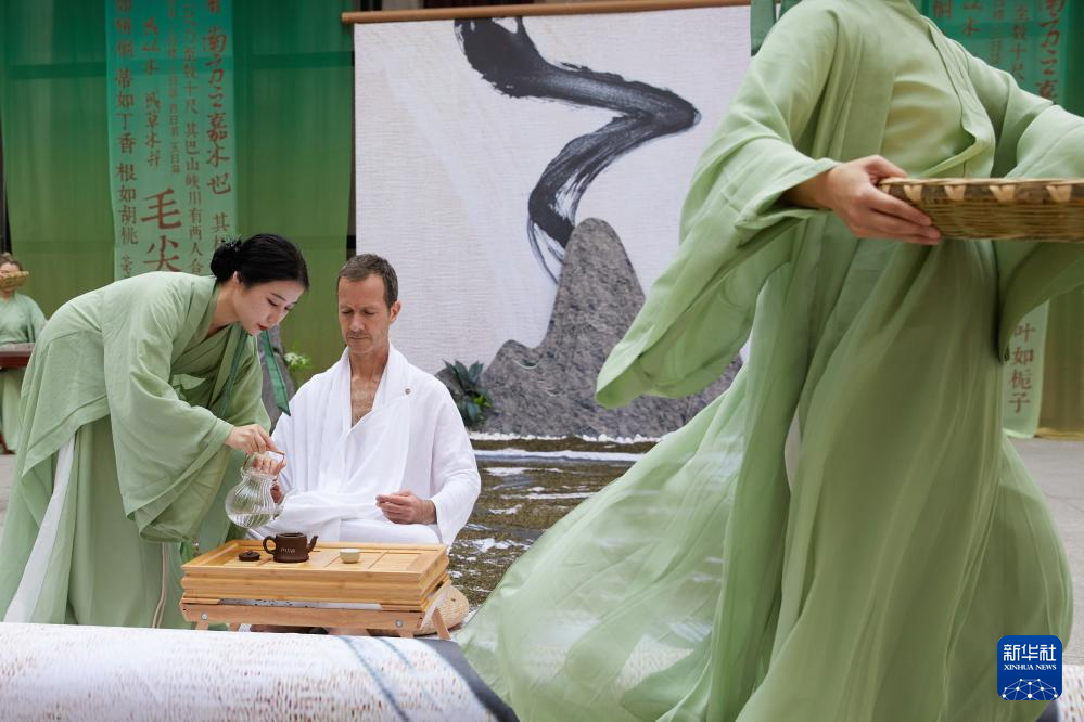 中国文化的博大精深和独特魅力一直以来吸引着全球各地的目光。近年来,秉持开放包容,坚持守正创新,中国文化的活力、开放度、创造力不断提升。2023年,中国文化在传承与发展中迸发出新的光彩。艺术无国界,文化共鸣成为拉近人民心灵的纽带。共享文化之美,中外文化和谐交融,为世界和平与发展注入动力。 6月8日,表演者在西班牙马德里中国文化中心举行的“茶和天下·雅集”活动上进行表演。 新华社记者 孟鼎博 摄