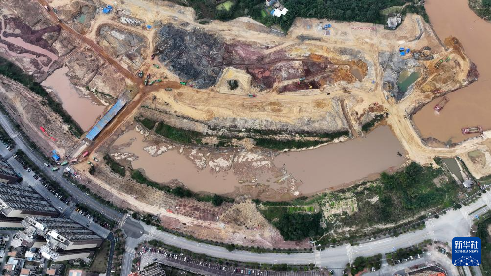 12月24日,在广西钦州市,施工队在拓宽流经市区的河道(无人机照片)。 平陆运河是我国在西南地区开辟的由西江干流向南入海的江海联运大通道,也是广西向海经济的骨干工程。寒冬时节,平陆运河的马道、企石、青年三大航运枢纽工地一片火热,施工队伍顶着寒潮抓紧作业抢进度。 新华社记者 张爱林 摄