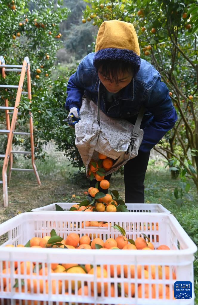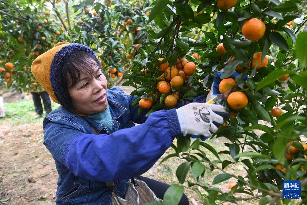 12月25日,在广西百色市乐业县新化镇百坭村,当地村民在采摘砂糖橘。 目前,广西百色市乐业县新化镇百坭村砂糖橘迎来收获季节,全村种植的2000亩砂糖橘是当地群众增收重要的渠道,产值达400万元。 新华社记者 陆波岸 摄