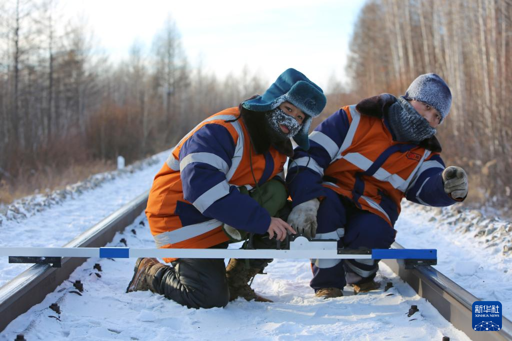 12月20日,在中国铁路哈尔滨局加格达奇工务段,漠河车间职工在现场测量,确认铁路轨道冻胀情况。 在中国最北角的黑龙江省漠河市,极寒的气候条件是各行各业扎根于此的工作者面临的常态。 冬季,各地供暖供电用煤需求量增加。漠河火车站的调车员需要长时间挂在室外列车前端的车梯上,瞭望前方状态,保障煤炭等生产生活物资的运输安全。在中国铁路哈尔滨局加格达奇工务段,受低温影响,铁路路基土体易在冻结过程中发生冻胀,造成钢轨高低起伏不平,增加行车安全风险。漠河车间职工采取垫板、捣固等方式消除冻害,使线路平顺稳固,保障旅客乘车安全。 在位于漠河市北极镇北极村的中国最北供电所——漠河供电公司北极供电所,工作人员通过每隔一段时间巡线、检查设备的方式,保障北极村及周边近百公里的架空线路和地埋电缆线路的供电安全。 每年冬天,漠河林场职工都会组成森林抚育队伍,扛着油锯、割灌机等设备,前往人迹罕至的深山作业点进行营林工作,修剪病腐木、被压木,改善林木的生长环境。 在寒冬腊月里,这些扎根最北的极寒工作者坚守劳动岗位,踏雪负寒,保障当地居民与往来游客的生活、出行安全,守护大兴安岭林区的生态环境。 新华社记者 石枫 摄 在中国最北角的黑龙江省漠河市,极寒的气候条件是各行各业扎根于此的工作者面临的常态。 冬季,各地供暖供电用煤需求量增加。漠河火车站的调车员需要长时间挂在室外列车前端的车梯上,瞭望前方状态,保障煤炭等生产生活物资的运输安全。在中国铁路哈尔滨局加格达奇工务段,受低温影响,铁路路基土体易在冻结过程中发生冻胀,造成钢轨高低起伏不平,增加行车安全风险。漠河车间职工采取垫板、捣固等方式消除冻害,使线路平顺稳固,保障旅客乘车安全。 在位于漠河市北极镇北极村的中国最北供电所——漠河供电公司北极供电所,工作人员通过每隔一段时间巡线、检查设备的方式,保障北极村及周边近百公里的架空线路和地埋电缆线路的供电安全。 每年冬天,漠河林场职工都会组成森林抚育队伍,扛着油锯、割灌机等设备,前往人迹罕至的深山作业点进行营林工作,修剪病腐木、被压木,改善林木的生长环境。 在寒冬腊月里,这些扎根最北的极寒工作者坚守劳动岗位,踏雪负寒,保障当地居民与往来游客的生活、出行安全,守护大兴安岭林区的生态环境。 新华社记者 石枫 摄