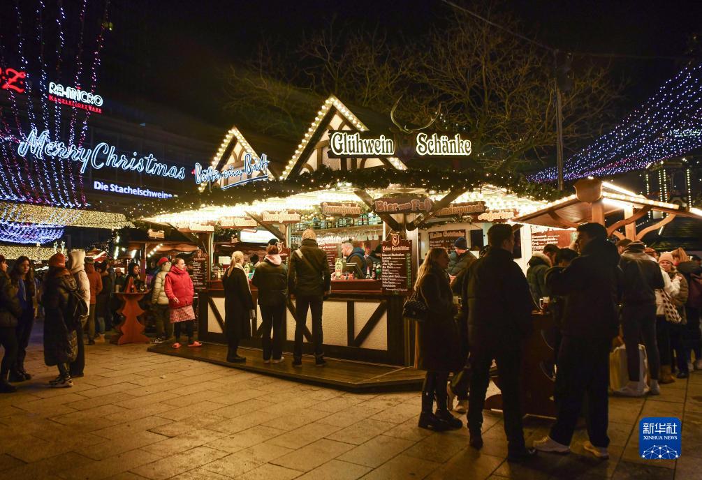 临近岁末,德国柏林多个商圈、市场装饰一新,营造节日气氛,吸引市民和游客。