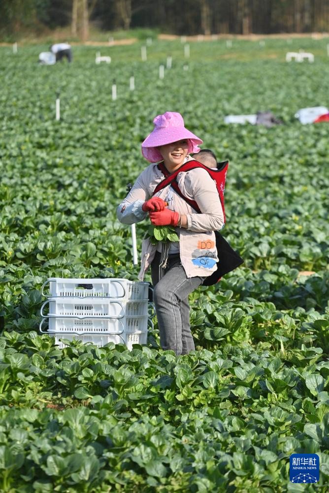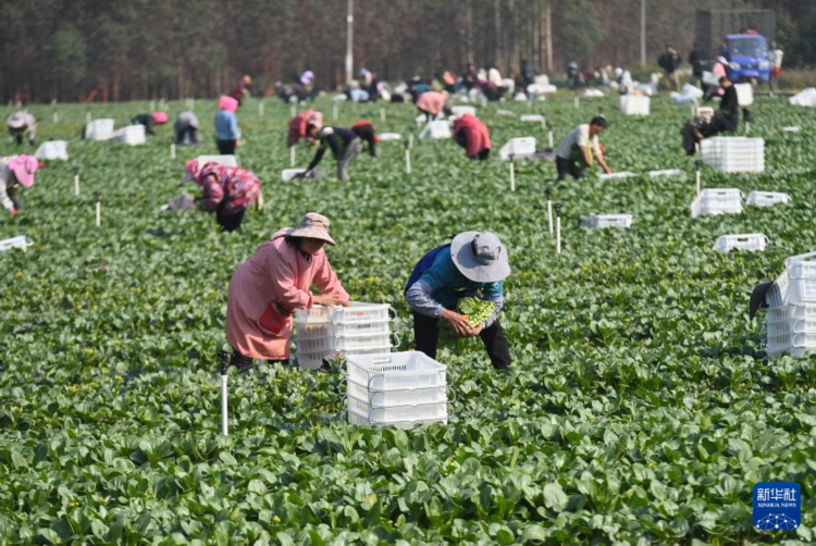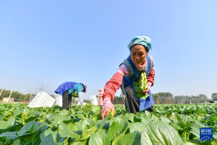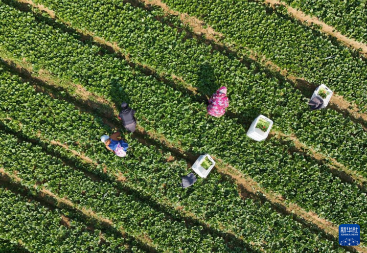 12月27日,工人在鹿寨县江口乡丹竹村蔬菜种植示范基地采收蔬菜。 近年来,广西柳州市鹿寨县江口乡大力发展蔬菜种植产业,打造面向粤港澳大湾区的现代种植示范基地,助力乡村产业振兴。 新华社记者 黄孝邦 摄