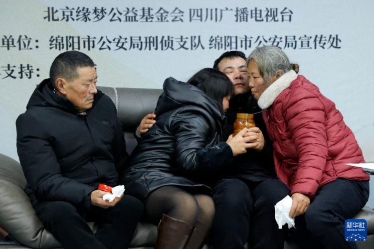 12月28日,在成都举行的认亲活动中,父亲薛明贵、妹妹薛清容、陈顺、母亲周本英(从左至右)一家四口团聚在一起。 1988年,四川省绵阳市的小男孩薛小军被拐至江苏并改名陈顺。他深藏着对养蜂人父母的记忆,长大后四处寻亲。多年来,他的亲生父母也在苦苦找他。2023年,陈顺通过四川省绵阳市公安局胡祥雨工作室采集了生物信息。警方通过一系列走访核实、生物信息采集等工作,最终比对成功,绵阳北川薛明贵、周本英夫妇与江苏陈顺系父母子女关系。失散35年的家人终得团聚。 新华社记者 沈伯韩 摄 |