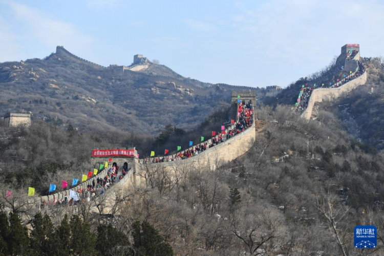 当日,2024年全国新年登高健身大会北京会场活动在北京八达岭长城举行,众多市民代表和游客用登高健身的方式喜迎新年。
