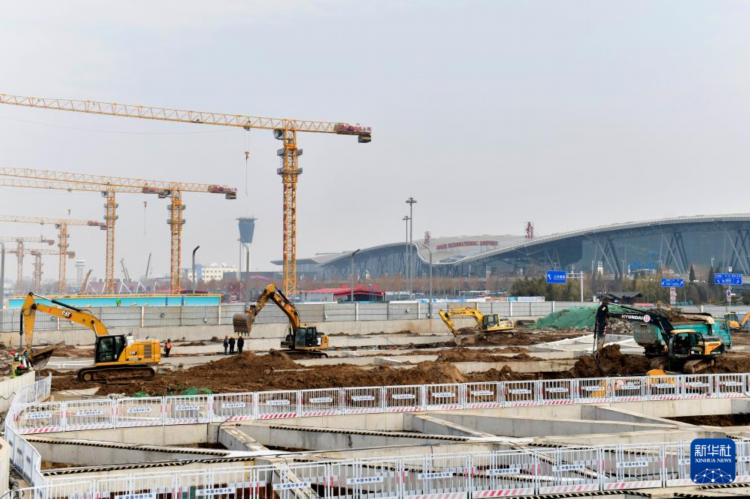 1月2日,在山东济南遥墙机场综合交通枢纽工程施工现场,中铁十局的建设者在进行土方挖掘作业。 新年伊始,各行各业的劳动者忙碌在各自的岗位上,接续奋斗,干劲十足。 新华社记者 郭绪雷 摄