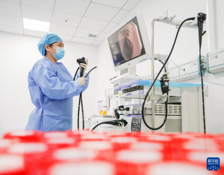 1月2日,河北省遵化市中医医院的医生在调试设备。 新年伊始,各行各业的劳动者忙碌在各自的岗位上,接续奋斗,干劲十足。 新华社发(刘满仓摄)
