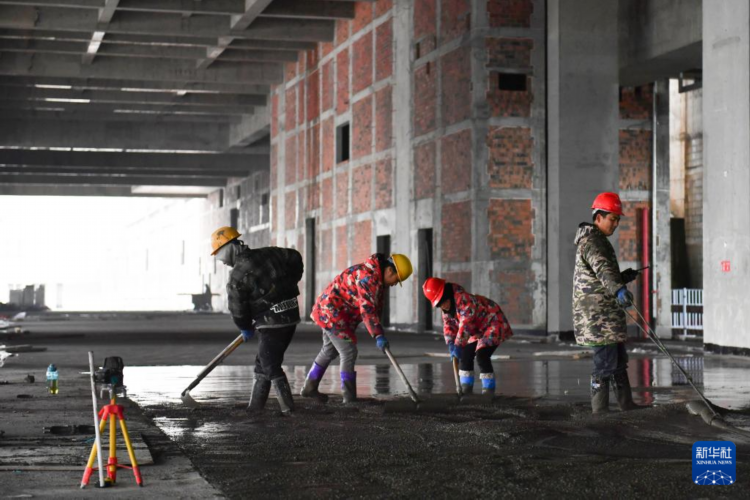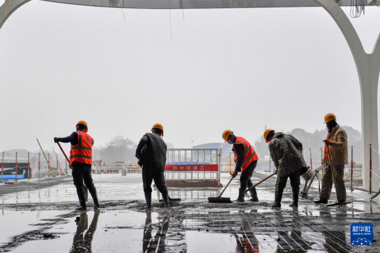 1月2日,中铁十一局的工人在广东南(沙)中(山)珠(海)城际铁路二十涌站建设工地施工。 新年伊始,各行各业的劳动者忙碌在各自的岗位上,接续奋斗,干劲十足。 新华社发(王荃荃摄)