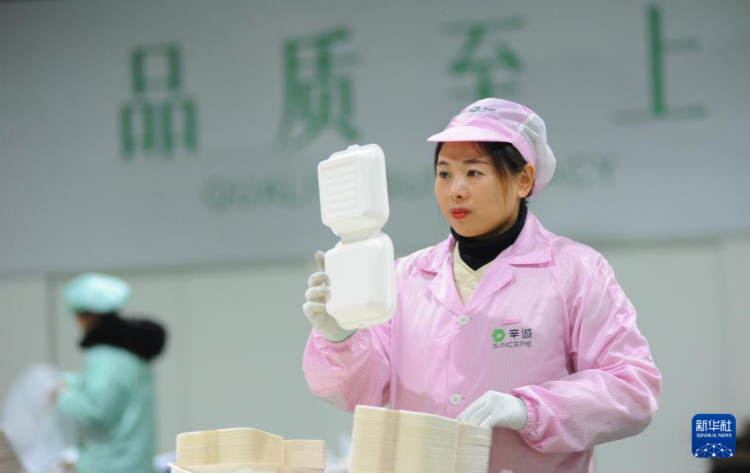 1月2日,在山东省滕州市西岗镇的一家餐盒生产企业,工人对餐盒质量进行初检。 新年伊始,各行各业的劳动者忙碌在各自的岗位上,接续奋斗,干劲十足。 新华社发(李志军摄)