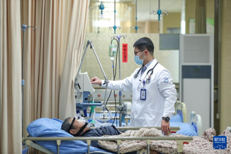 1月2日,在辽宁沈阳,中国医科大学附属盛京医院第三急诊科主任沈海涛为患者调节呼吸机。 新年伊始,各行各业的劳动者忙碌在各自的岗位上,接续奋斗,干劲十足。 新华社记者 龙雷 摄