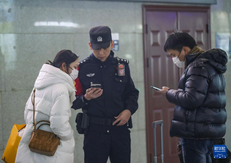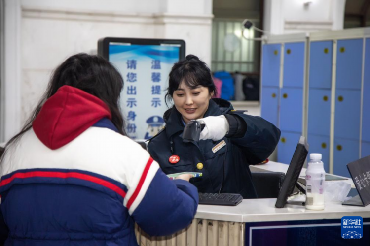 1月2日,沈阳站客运员徐杨在查验旅客乘车信息。 新年伊始,各行各业的劳动者忙碌在各自的岗位上,接续奋斗,干劲十足。 新华社发(韩庆潇摄)