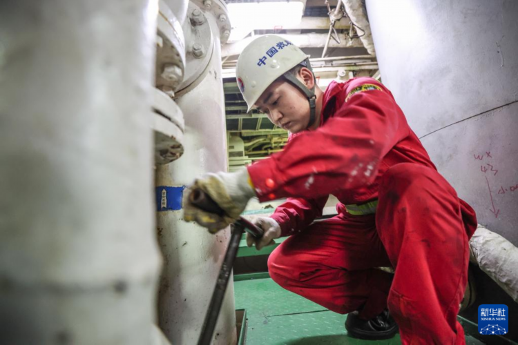 1月2日,交通运输部南海救助局“南海救102”轮工作人员对机舱进行检修和维护保养。 新年伊始,各行各业的劳动者忙碌在各自的岗位上,接续奋斗,干劲十足。 新华社记者 张丽芸 摄