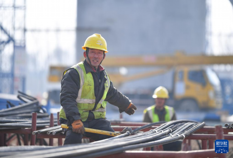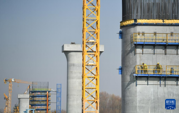 1月2日,在陕西西安,中铁二十局工人在西(安)延(安)高铁渭河特大桥施工现场工作。 新年伊始,各行各业的劳动者忙碌在各自的岗位上,接续奋斗,干劲十足。 新华社记者 张博文 摄