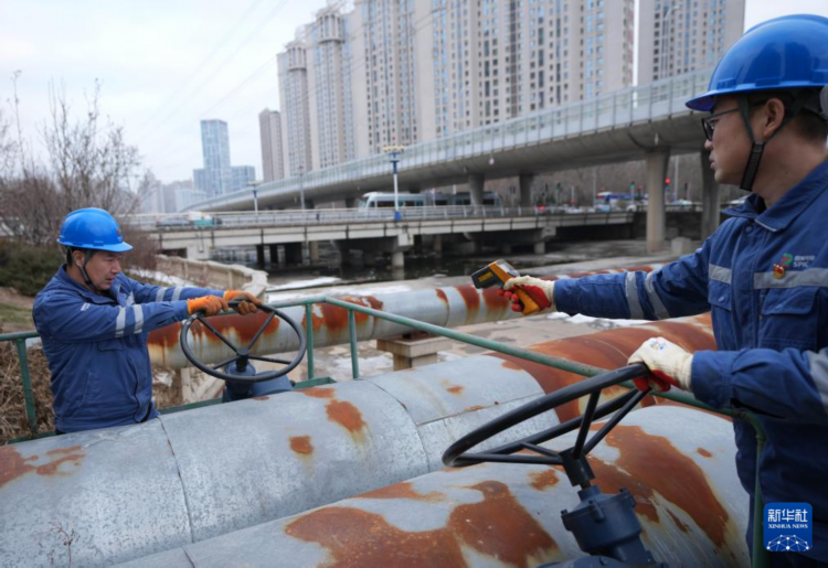 1月1日,在辽宁大连,国家电投东北公司大连大发能源分公司供热输配分场外网巡视操作所所长张春明(左)与同事一起排查供暖管道是否有渗漏。 新年伊始,各行各业的劳动者忙碌在各自的岗位上,接续奋斗,干劲十足。 新华社记者 李钢 摄