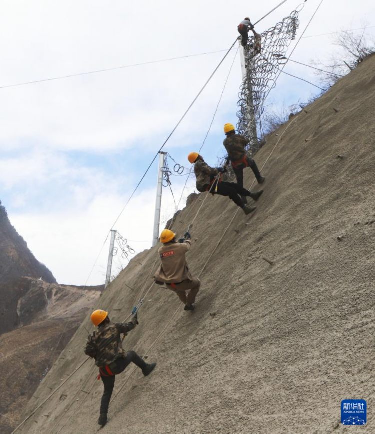 1月1日,在西藏昌都玉曲河扎拉水电站项目施工现场,工人在布设被动防护网。 新年伊始,各行各业的劳动者忙碌在各自的岗位上,接续奋斗,干劲十足。 新华社记者 关明辉 摄