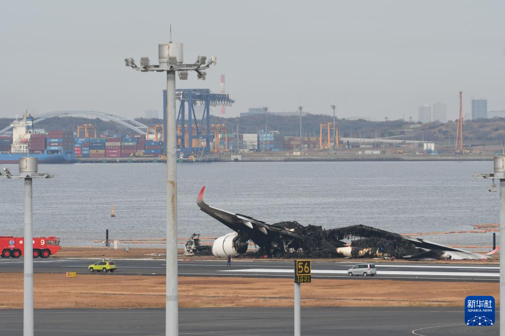 这是1月3日在日本东京羽田机场拍摄的飞机残骸。