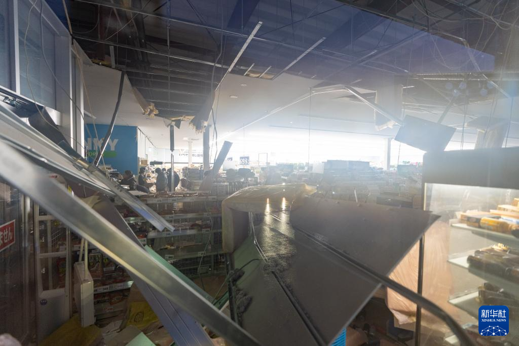 1月3日,在日本石川县轮岛市,市民在一家超市里购物。该超市在地震中部分损毁。 日本石川县能登半岛3日上午发生5.5级余震,重灾区轮岛市震感强烈。据石川县政府3日公布的数据,能登半岛地震已造成该县64人死亡。 新华社记者 张笑宇 摄 |