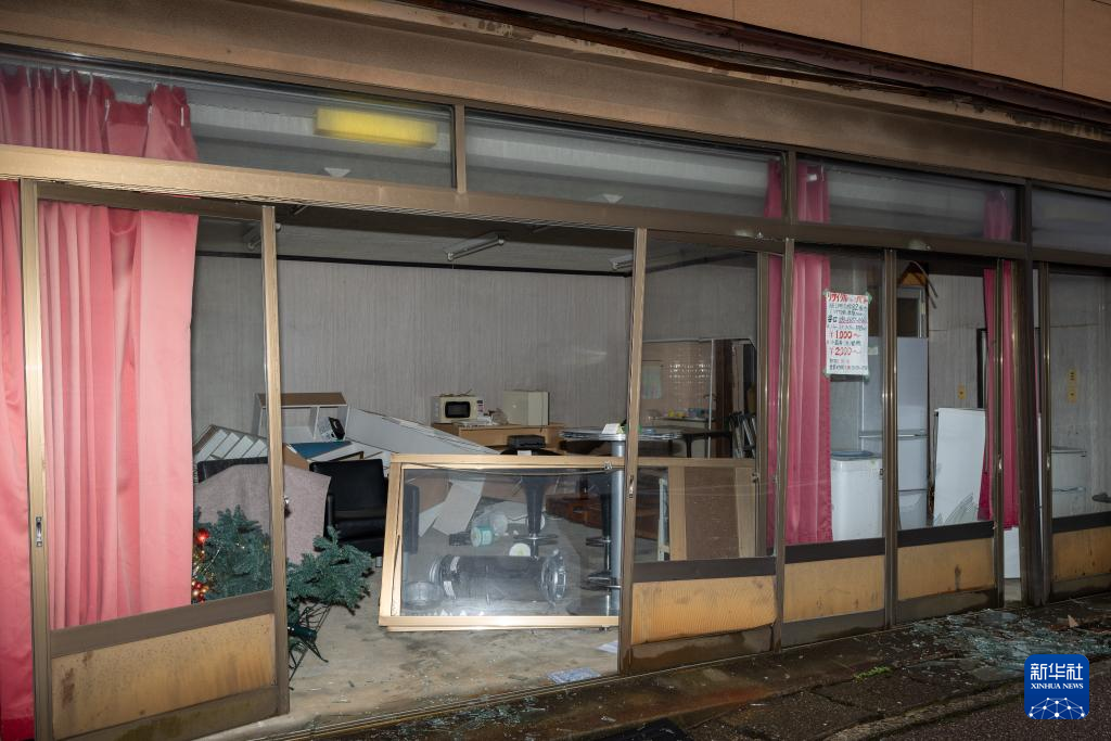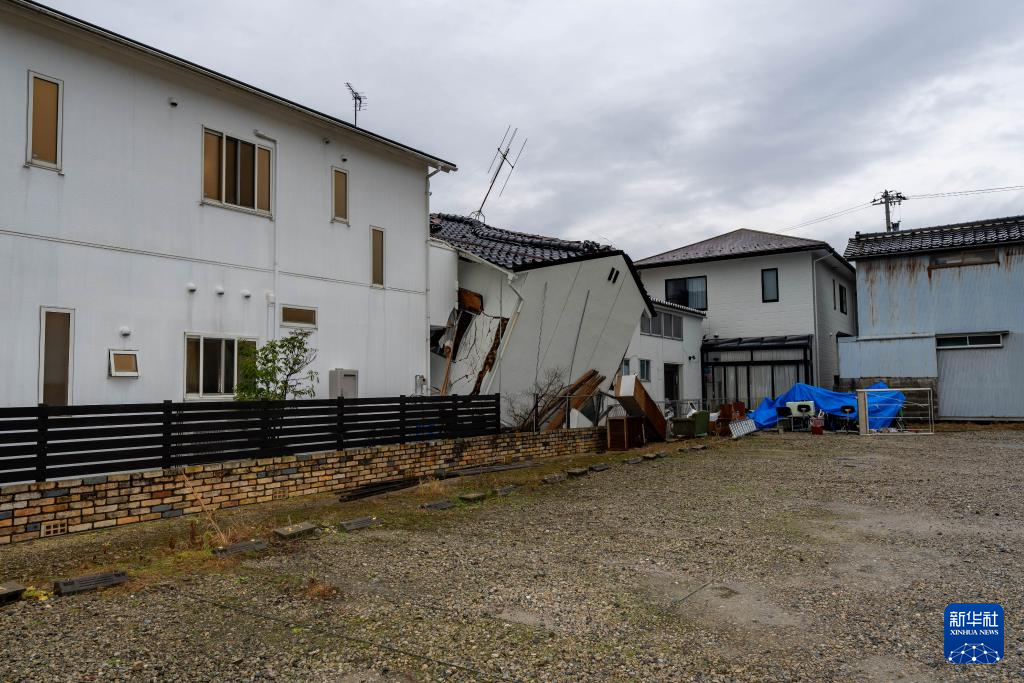 这是1月3日在日本石川县七尾市拍摄的一处因地震受损的房屋。 日本石川县政府最新公布的数据显示,能登半岛地震已导致该县62人死亡。 新华社记者 张笑宇 摄