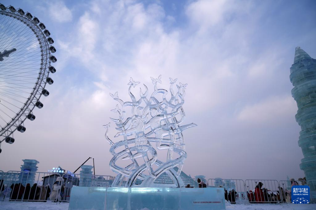 1月4日在哈尔滨冰雪大世界园区拍摄的俄罗斯选手参赛冰雕作品《生命之舞》。 当日,为期3天的第35届中国·哈尔滨国际冰雕比赛在哈尔滨冰雪大世界园区落下帷幕。本届比赛共有来自7个国家的30余支代表队参赛,为游客献上一场冰雪视觉盛宴。 新华社记者 王建威 摄