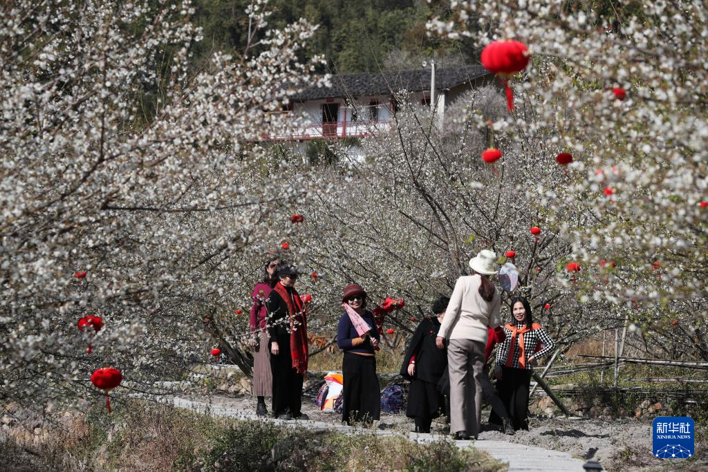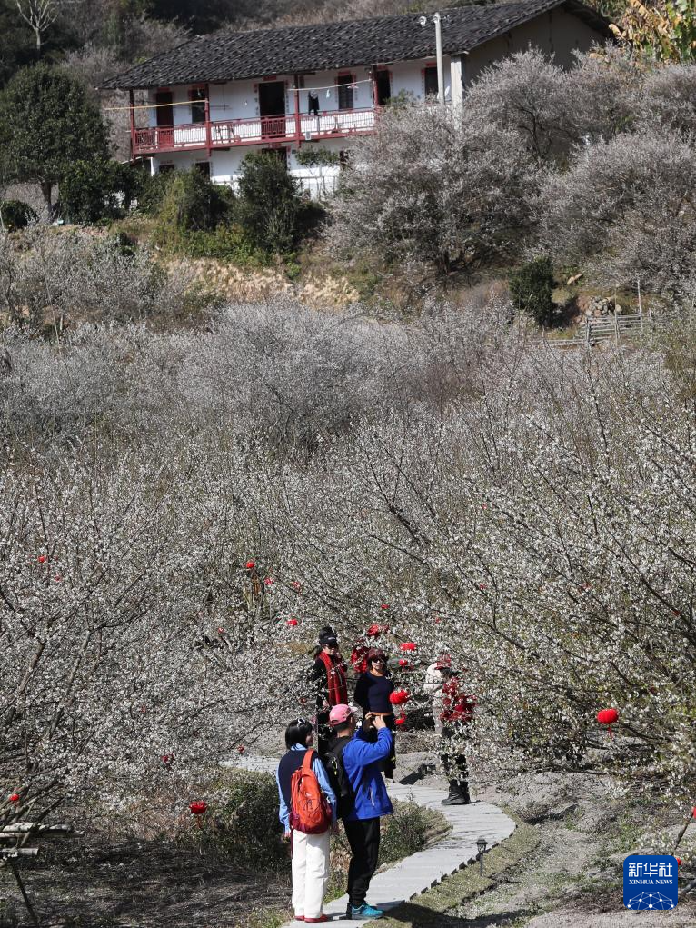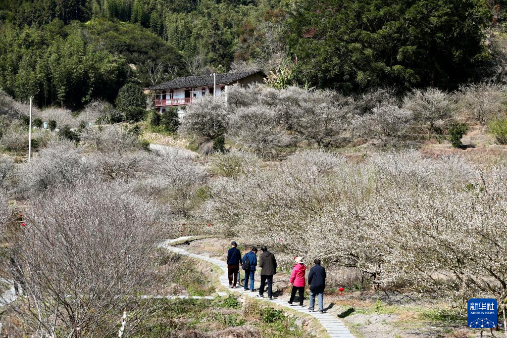 1月4日,游客在福州市永泰县葛岭镇小洲村赏花。 新年伊始,福建省福州市永泰县山岭间山花烂漫,数万亩青梅正当花期,吸引不少游客前来赏“梅景”、品“梅韵”、寻“梅趣”。永泰县是福建省青梅主产区,因地制宜种植的5万亩青梅逐渐成为乡村振兴的特色产业。 新华社记者 姜克红 摄