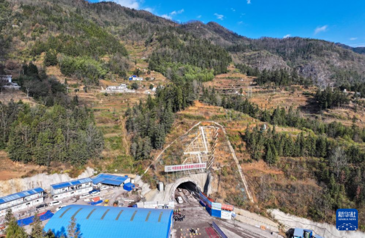 1月7日拍摄的贯通后的盘兴铁路乐民隧道(无人机照片)。 当日,全长1394米的贵州盘兴铁路乐民隧道顺利贯通。据了解,盘兴铁路北起沪昆高铁盘州站,止于兴义南站,线路全长约98公里,设计时速250公里,是贵州省实现“市市通高铁”的最后一个项目。 新华社记者 刘续 摄