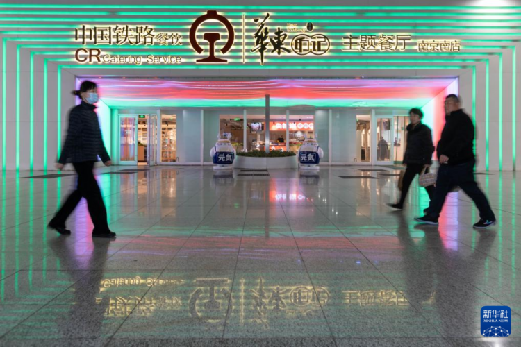1月7日在南京南站拍摄的华东印记主题餐厅。 1月5日起,中国铁路上海局集团有限公司在途经上海、杭州、南京等地的近140趟高铁列车上,陆续上新15款价格从18元到30元不等的套餐。 截至目前,已有上海虹桥、杭州东、南京南、合肥南等21个车站加入铁路12306网络供餐矩阵,部分城市的高铁站建成投用6家华东印记主题餐厅,上线供餐商家60余家。 新华社记者 王翔 摄 |