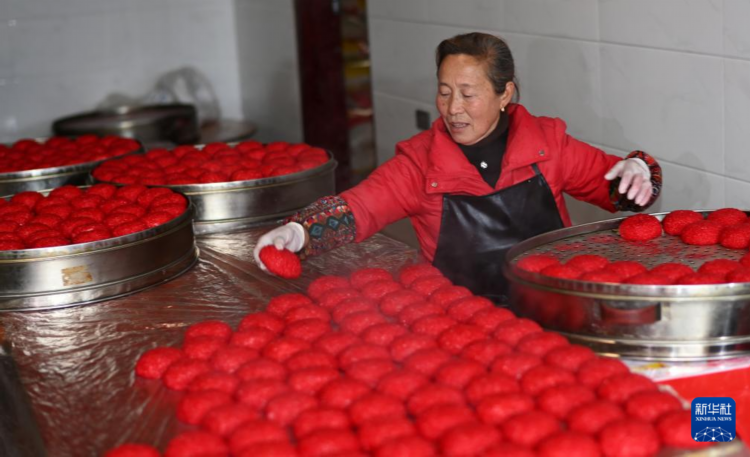 1月7日,贵州省玉屏侗族自治县田坪镇白果村村民在制作红粑。 在贵州省玉屏侗族自治县,许多侗族群众从农历冬月末、腊月初开始陆续制作红粑,迎接新年的到来。红粑以糯米等为原料,经过碎米、打芡、滚红上色、揉捻、蒸制等工序制作而成,象征团圆、美满,是侗族群众的传统年味美食。 新华社记者 杨楹 摄
