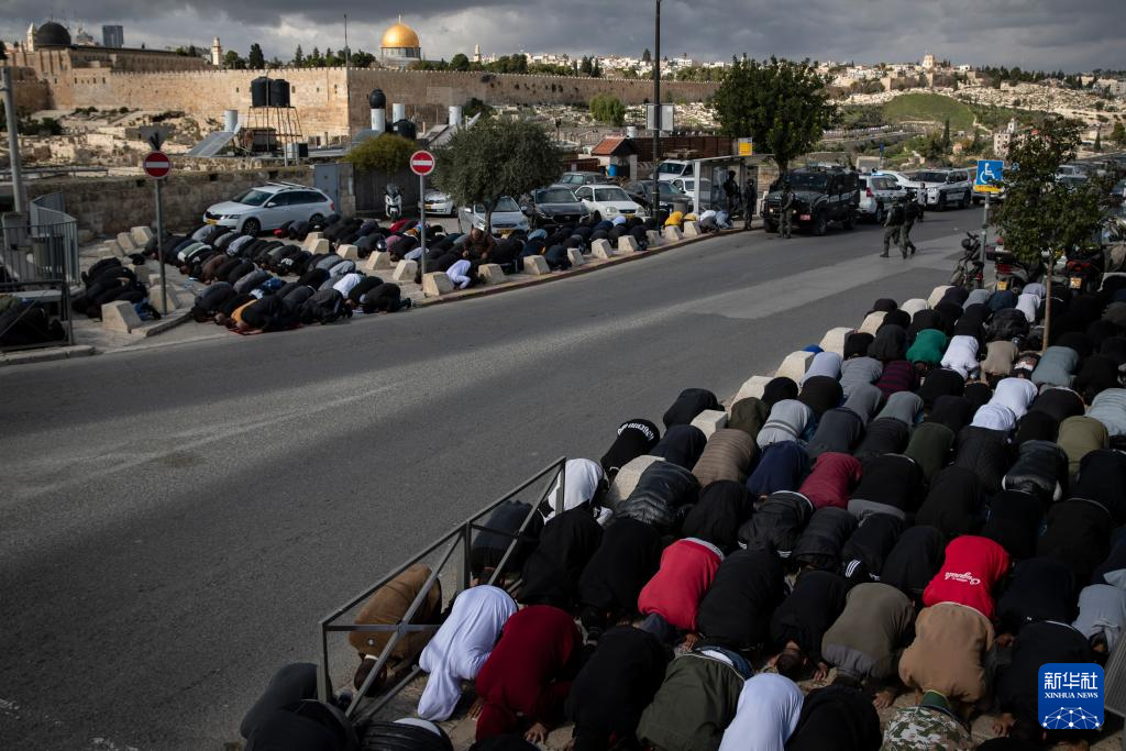 1月5日,人们在耶路撒冷老城周边进行主麻日聚礼。