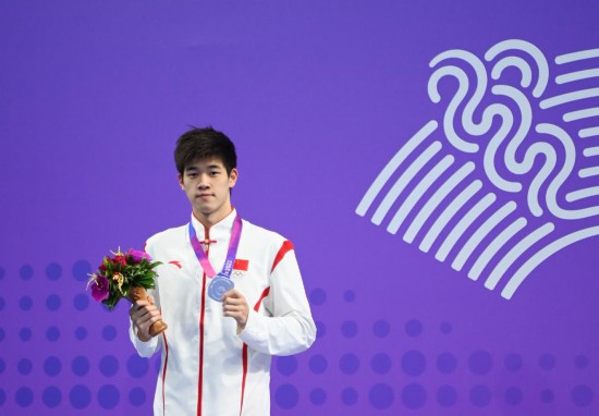 2023年9月27日,亚军中国选手潘展乐在杭州亚运会游泳项目男子200米自由泳的颁奖仪式上。新华社记者 黄宗治 摄